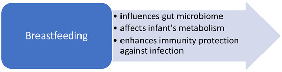 Human breastmilk is an optimal nutritional supply for neonates and infants. It influences the gut microbiome, infant’s metabolism and immunity protection against infection (Figure 2). There is strong evidence based on a large number of studies of a reduction in severe respiratory infections in breastfed children [6]. However, its role in asthma prevention is less documented and the evidence is inconclusive.