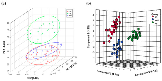 3.1. Distinguishing Metabolomics Profiles among AD, aMCI, and HC