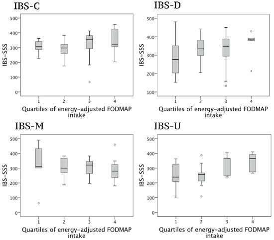 3.2. Correlations between FODMAP Intake and Symptom Severity in Women