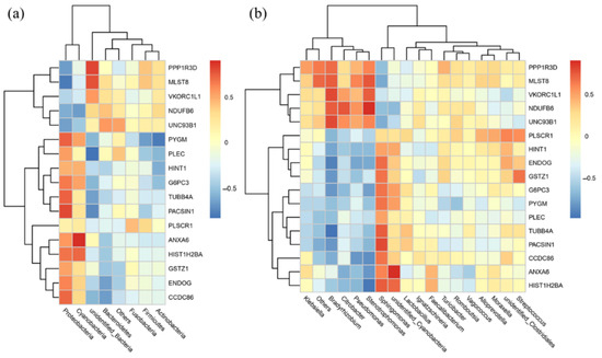 3.7. Correlation Analysis of the Microbiomic and Proteomic Data
