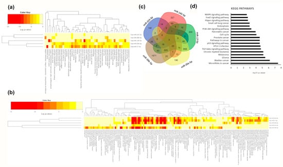 - Vlachos, I.S.; Zagganas, K.; Paraskevopoulou, M.D.; Georgakilas, G.; Karagkouni, D.; Vergoulis, T.; Dalamagas, T.; Hatzigeorgiou, A.G. DIANA-miRPath v3.0: Deciphering microRNA function with experimental support. Nucleic Acids Res. 2015, 43, W460–W466. [Google Scholar] [CrossRef]
