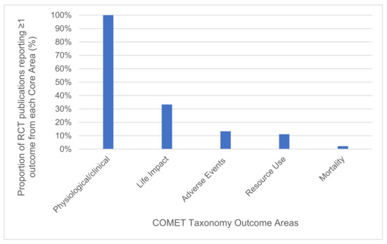 Notably, these are all within the physiological/clinical core area. Information on the reporting of each outcome domain is displayed in Figure 3.