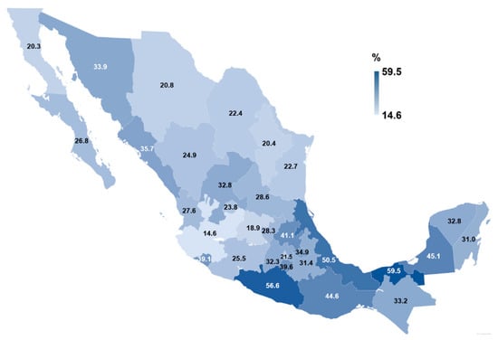 - Consejo Nacional de Evaluación de la Política de Desarrollo Social. Medición de Pobreza 2018–2020. Available online: https://www.coneval.org.mx/Medicion/MP/Paginas/Pobreza_2020.aspx (accessed on 11 August 2021).
