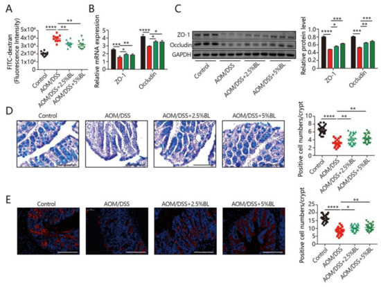 3.3. BL Improves Colonic Mucosal Barrier Function