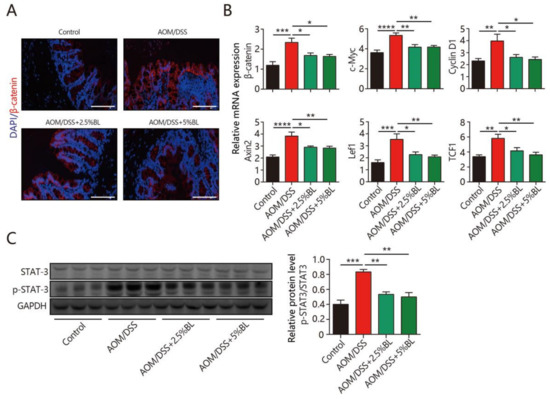 3.5. BL Inhibits β-Catenin and STAT3 Signaling