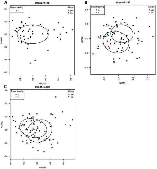 - Abrahamsson, T.R.; Jakobsson, H.E.; Andersson, A.F.; Björkstén, B.; Engstrand, L.; Jenmalm, M.C. Low diversity of the gut microbiota in infants with atopic eczema. J. Allergy Clin. Immunol. 2012, 129, 434–440. [Google Scholar] [CrossRef] [PubMed] [Green Version]