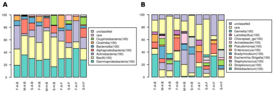 - Schloss, P.D.; Westcott, S.L.; Ryabin, T.; Hall, J.R.; Hartmann, M.; Hollister, M.B.; Lesniewski, R.A.; Oakley, B.B.; Parks, D.H.; Robinson, C.J. et a. Introducing mothur: Open-source, platform-independent, community-supported software for describing and comparing microbial communities. Appl Environ. Microbiol 2009, 75, 7537–7541. [Google Scholar] [CrossRef] [PubMed] [Green Version]