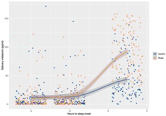 Melatonin is a biomarker used to study the effects of circadian disruption on neurophysiological, and metabolic processes []. A variety of methods for sampling and testing melatonin have been described, but there are no established guidelines on the methodology to use. Recently, the analysis of melatonin in saliva samples has emerged as the most practical method currently used in sleep laboratories, but also in studies performed at home [,,].