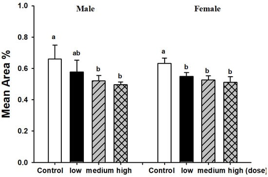 | 215 mg/kgBW/day | 10.00 ± 0.43 | 14.90 ± 0.45 b | 14.70 ± 0.45 b | 15.05 ± 0.39 b |
