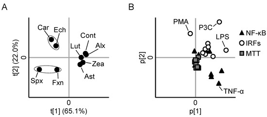 Chicago/Turabian StyleManabe, Yuki, Nami Tomonaga, Takashi Maoka, and Tatsuya Sugawara. 2021. "Multivariate Analysis Reveals That Unsubstituted β-Ring and C8-Keto Structures Are Important Factors for Anti-Inflammatory Activity of Carotenoids" Nutrients 13, no. 11: 3699. https://doi.org/10.3390/nu13113699