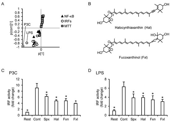 3.8. C8-Keto Carotenoids Inhibit P3C- and LPS-Induced IRF Activation