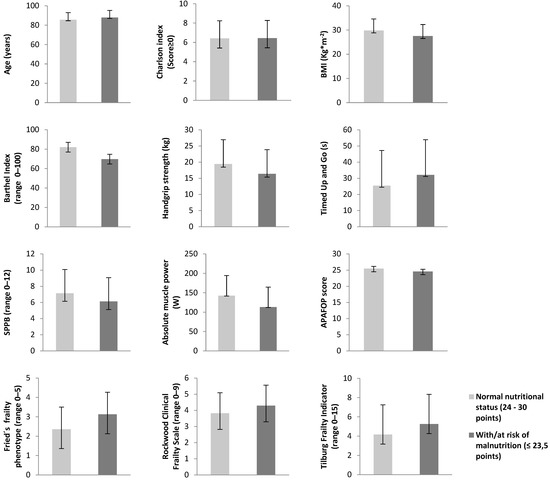 - Urquiza, M.; Fernandez, N.; Arrinda, I.; Sierra, I.; Irazusta, J.; Rodriguez Larrad, A. Nutritional Status is Associated with Function, Physical Performance and Falls in Older Adults Admitted to Geriatric Rehabilitation: A Retrospective Cohort Study. Nutrients 2020, 12, 2855. [Google Scholar] [CrossRef]
