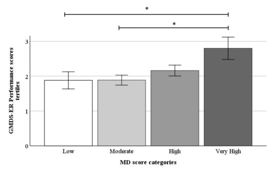 3.4. Adherence to MD and Cognitive Outcomes