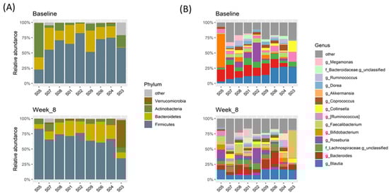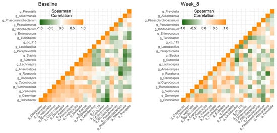 3.4. The Association among Changes of Symptoms, Serum Biomarkers, and Gut Microbiota