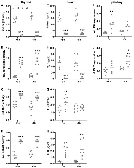 3.2. The Systemic Selenium Status Is Unaffected by Iodine Deficiency