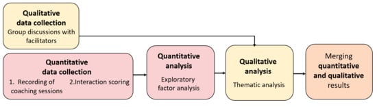 The qualitative data from the facilitators and the quantitative data from the recorded sessions were collected in parallel during the intervention process. The scoring of recorded sessions was conducted after the intervention and the quantitative analysis before the qualitative analysis.