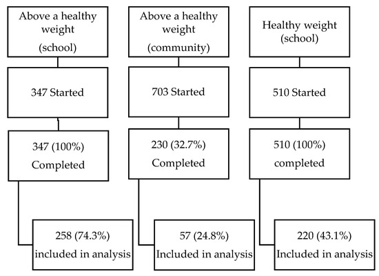 Additionally, although the programme content was the same in both settings, the community venues included only children above a healthy weight and the secondary schools included all children regardless of weight. As the school-based programme was run with participants of all BMI z-scores, it became possible to explore the programme effect in participants with a healthy weight as well as those with excess weight.