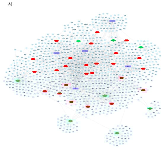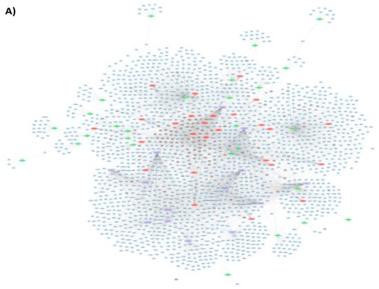 - Shannon, P.; Markiel, A.; Ozier, O.; Baliga, N.S.; Wang, J.T.; Ramage, D.; Amin, N.; Schwikowski, B.; Ideker, T. Cytoscape: A software environment for integrated models of biomolecular interaction networks. Genome Res. 2003, 13, 2498–2504. [Google Scholar] [CrossRef]