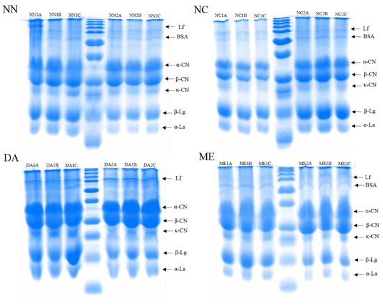 - Sharma, N.; Sharma, R.; Rajput, Y.S.; Mann, B.; Singh, R.; Gandhi, K. Separation methods for milk proteins on polyacrylamide gel electrophoresis: Critical analysis and options for better resolution. Int. Dairy. J. 2021, 114, 104920. [Google Scholar] [CrossRef]