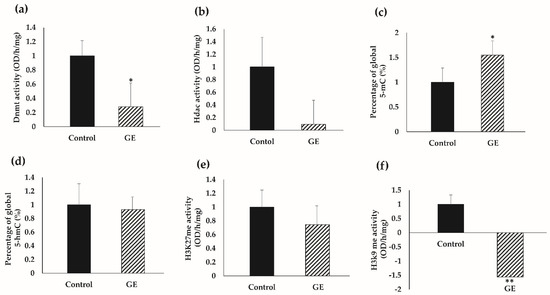 3.5. Dietary GE Treatment Resulted in Expression Changes in Multiple Epigenetic-Related Genes
