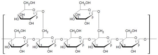β-glucans are essential components of cell walls in cereal grains, mainly oats, barley, rye, and millet. They occur in the outermost layer of grains (aleuronic layer) mainly as unbranched β-D-glucose chains linked by β-1-3 or β-1-4 glycosidic bonds. Their content, however, is quite low, ranging from 4–7%. The highest molecular weights among cereal grain glucans are observed in β-glucans of oats (3,000,000 Da) and barley (2,100,000 Da) [30,31].