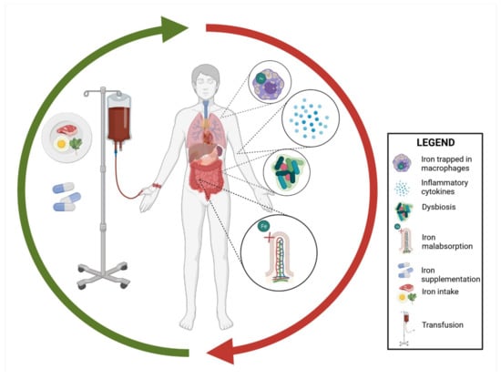 - Gargallo-Puyuelo, C.J.; Alfambra, E.; García-Erce, J.A.; Gomollon, F. Iron treatment may be difficult in inflammatory diseases: Inflammatory bowel disease as a paradigm. Nutrients 2018, 10, 1959. [Google Scholar] [CrossRef] [PubMed] [Green Version]