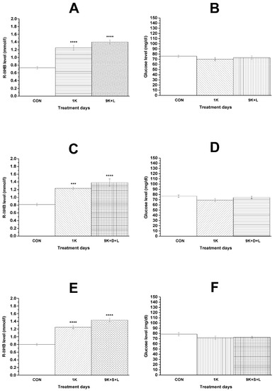 3.3. KEKS-Generated Changes in Blood R-βHB and Glucose Levels and Body Weight