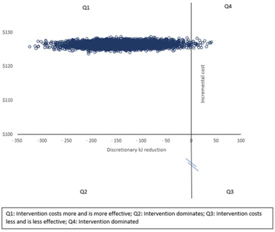 Cost–effectiveness plane for reduction in lunchbox energy from discretionary foods.