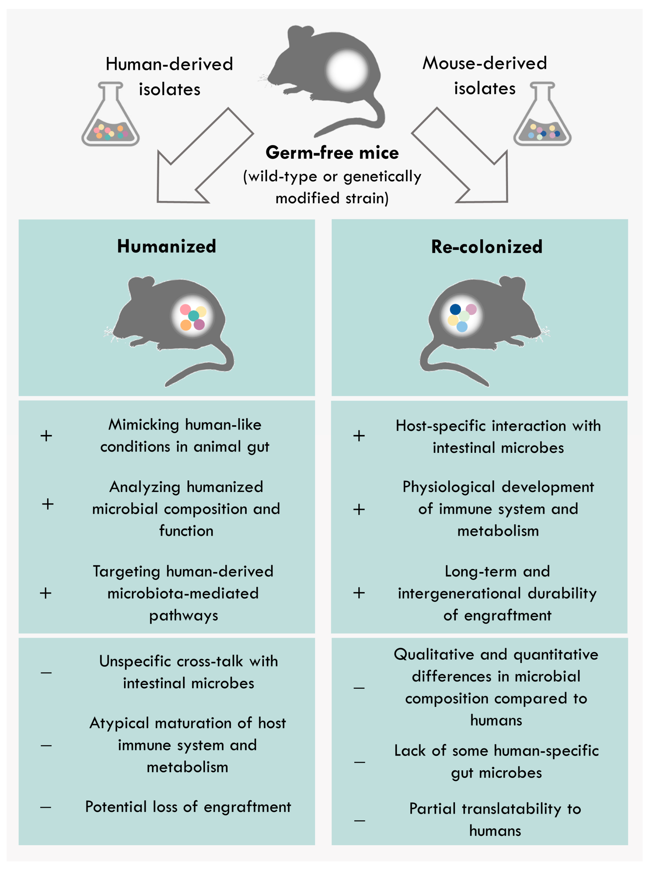 - Park, J.C.; Im, S.H. Of men in mice: The development and application of a humanized gnotobiotic mouse model for microbiome therapeutics. Exp. Mol. Med. 2020, 52, 1383–1396. [Google Scholar] [CrossRef]