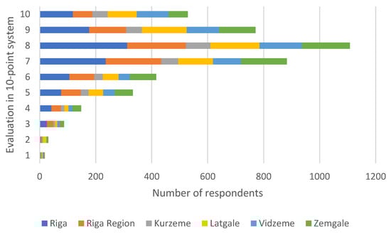 The characteristics of families participating in the study are given in Table 1, which showed that several generations live in one household in Latvia, as 70.7% of questionnaires indicated 10 family members; 88.9% of parents worked during the COVID-19 pandemic and in 72.4% of cases the mother was the one who prepared the lunch. In the study, a total of 6120 pupils received school catering allowance during the COVID-19 pandemic. The number of surveyed respondents covered the whole of Latvia, relatively evenly distributed by regions: Riga region—891 (17.2%), Kurzeme—497 (9.6%), Latgale—856 (16.6%), Vidzeme—694 (13.4%) and Zemgale—1051 (20.3%) taking the dispersion of the population into account. The capital of Latvia—Riga (1177 respondents—22.8%) was singled out because it has the highest number of inhabitants and schools. The obtained data allowed us to assess possible differences by region.