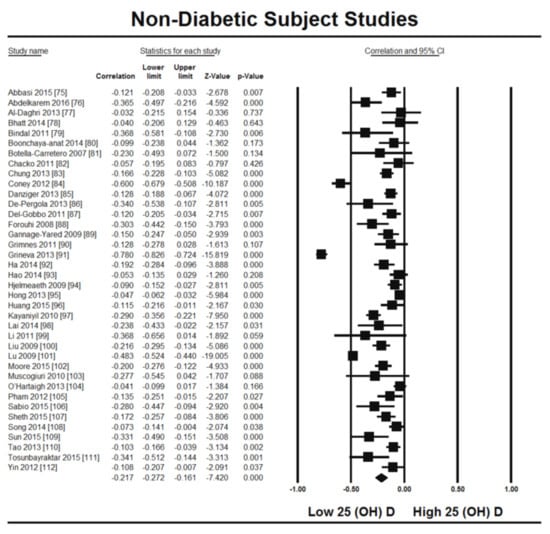 - Rafiq, S.; Jeppesen, P.B. Is hypovitaminosis D related to incidence of type 2 diabetes and high fasting glucose level in healthy subjects: A systematic review and meta-analysis of observational studies. Nutrients 2018, 10, 59. [Google Scholar] [CrossRef]