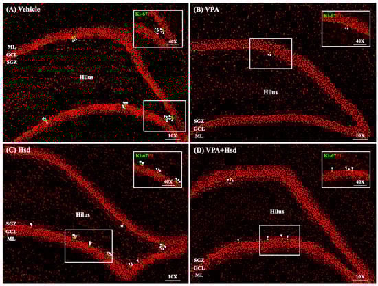 3.3. Effects of VPA and Hsd on the Ki-67 Positive Cell Count in the Hippocampus