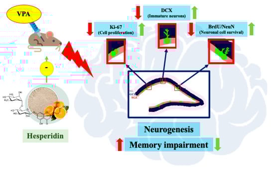 Hesperidin Reduces Memory Impairment Associated with Adult Rat Hippocampal Neurogenesis Triggered by Valproic Acid