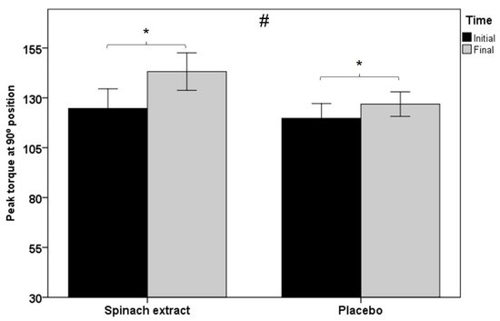 Although the nutritional survey of macronutrients at the end of the study showed that subjects in both study groups had maintained their dietary habits, dietary intake during the protocol was not controlled. It can be argued that it is difficult to isolate an effect of spinach extract on muscle strength because of the absence of vegetable, fruit, or vitamin intake evaluations, but the presence of a control group, the double-blind design of the study, and the dietary control based on strong recommendations to maintain dietary habits and results of the nutritional survey, minimizes this limitation. It is recommended to research spinach extracts in further clinical trials with a larger study population, with higher training intensities and/or prolonged training periods, with subjects stratified by gender, to further clarify the role of supplementation with Spinacia oleracea L. in the promotion of healthy aging.