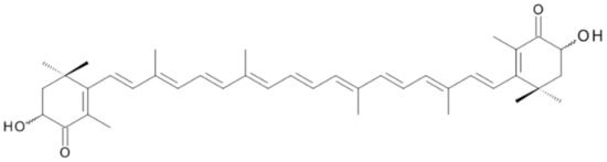 42. Miki, W. Biological functions and activities of animal carotenoids. Pure Appl. Chem. 1991, 63, 141–146. [Google Scholar] [CrossRef]