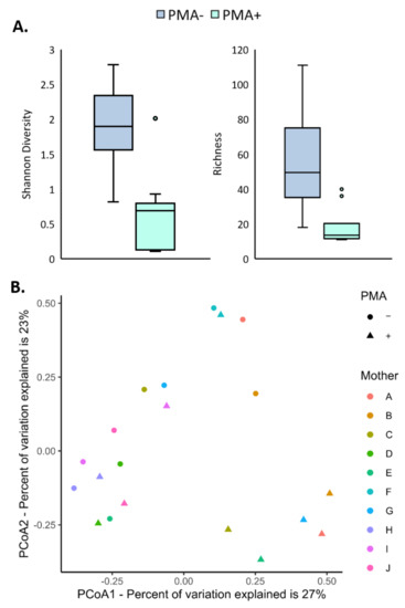 - Stinson, L.F.; Keelan, J.A.; Payne, M.S. Characterization of the bacterial microbiome in first-pass meconium using propidium monoazide (PMA) to exclude nonviable bacterial DNA. Lett. Appl. Microbiol. 2019, 68, 378–385. [Google Scholar] [CrossRef]