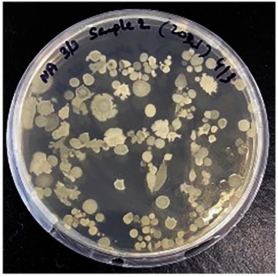 Kombucha samples were recorded for absorbance at 600 nm to estimate the colony forming units (CFU) per mL. Calculated volume was plated on nutrient agar to observe the microbial growth. Total CFU observed were 108 per mL. Interestingly, more yeast colonies were observed to grow in kombucha samples (Figure 7).