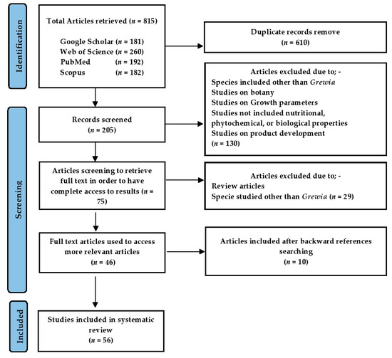 Qamar, M.; Akhtar, S.; Ismail, T.; Wahid, M.; Barnard, R.T.; Esatbeyoglu, T.; Ziora, Z.M. The Chemical Composition and Health-Promoting Effects of the Grewia Species—A Systematic Review and Meta-Analysis. Nutrients 2021, 13, 4565. https://doi.org/10.3390/nu13124565