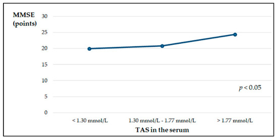MMSE point scale depending on TAS in the serum of patients with AD, estimated by the ANOVA Kruskal–Wallis test.