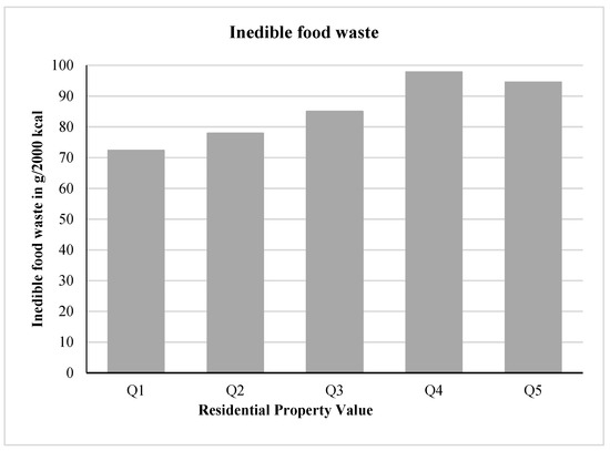 Inedible food waste (g/2000 kcal) and quintiles of residential property value.