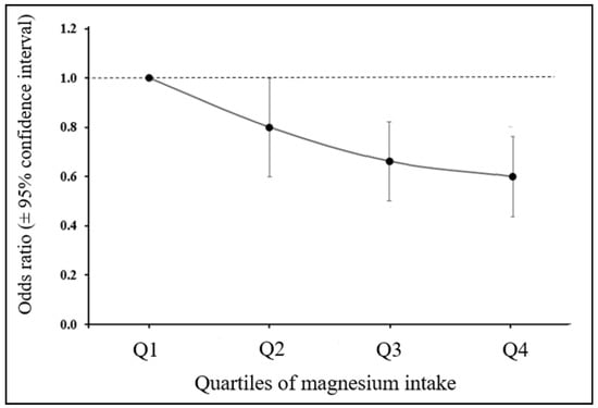 Dose-response association between Mg intake and risk of breast cancer in Chinese women. Derived from [60].