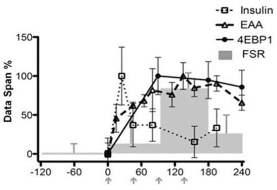 - Norton, L.E.; Layman, D.K.; Bunpo, P.; Anthony, T.G.; Brana, D.V.; Garlick, P.J. The leucine content of a complete meal directs peak activation but not duration of skeletal muscle protein synthesis and mammalian target of rapamycin signaling in rats. J. Nutr. 2009, 139, 1103–1109. [Google Scholar] [CrossRef] [PubMed]