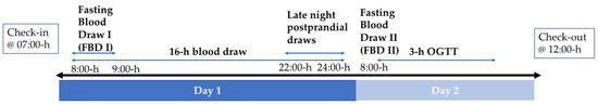 Schematic of 2-day inpatient visits. Oral glucose tolerance test (OGTT).