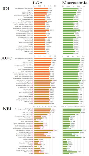3.4. Final Order of Significance of Macrosomia and LGA Predictors; Overall Effects of Three Prediction Indexes (AUC, IDI and NRI)