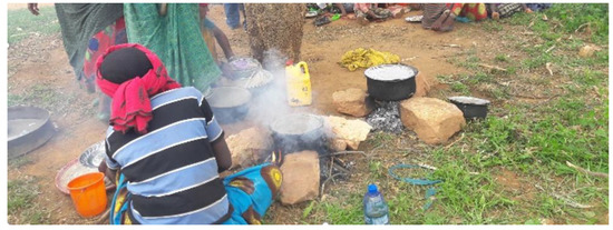 The demonstration settings were a vital consideration influencing mothers’ likely success in the ARF lessons. In this study, the demonstration HDA leaders organised for their communities was under the shade of a tree. This was unsuitable due to the uncomfortable sitting arrangements for participants (Figure 4). Furthermore, participants were continuously distracted from the demonstration by passers-by, who chatted with participants. There was also a water accessibility issue, with insufficient water available to maintain hygiene and ensure that prepared food was safe for consumption (Figure 4).