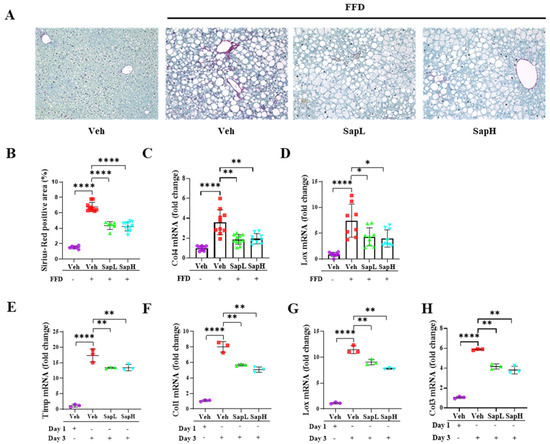 3.2. Saponin Extract Alleviated FFD-Induced Steatofibrosis