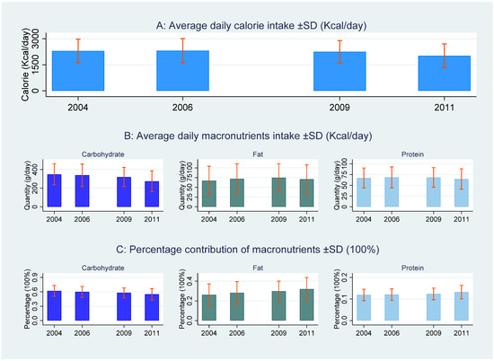 58]. Third, the CHNS used three-day food diaries, which might under/over report the real quantity of food consumed, although it has been corrected by using a food inventory taken at the household level over the same three-day period. Finally, our results should be interpreted for the survey period from 2004 to 2011, considering that China has experienced significant changes in urbanization and nutrition transition in recent years. Thus, this study is a first attempt for better understanding the nutrition transition resulting from accelerating urbanization in rural China. Further investigation of the quality differences in the macronutrients is crucial for fully understanding the dietary transition in rural China through urbanization. The nexus of the complex interactions between urbanization, dietary transition, the society, and the environment requires further attention in future studies.