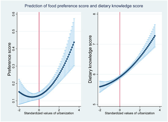32], especially in transitional economies such as China. Dietary knowledge is considered another channel to explain the effect of urbanization on dietary transition. We expect that a strong link exists between urbanization and dietary knowledge because economic or regional development and a changing food environment help individuals easily obtain more sources of information concerning their diets and nutrition-related health behaviors [