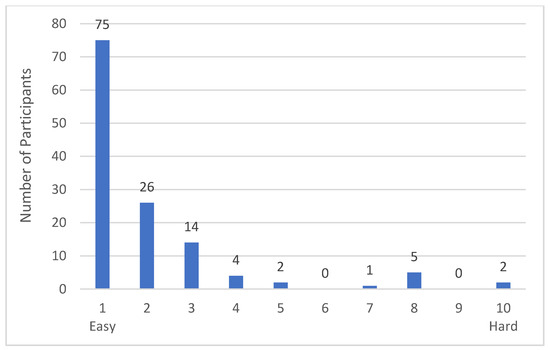 Participants’ difficulty rating of the Oxford Meat Frequency Questionnaire. Responses from study participants to the evaluation question “How easy or hard did you find filling in the questionnaire? (Scale from 1 easy to 10 hard)”, collected on the last day of the study (Day 7, Week 3). n = 129.