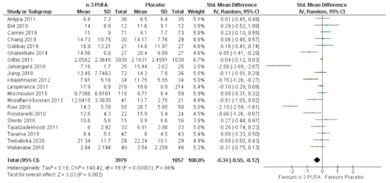 3.3. Effects of n-3 PUFA in Meta-Analysis